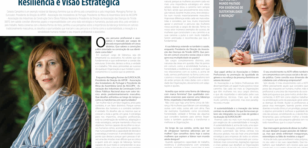 25 Setembro, 2025Liderar com verdade, resiliência e visão estratégica. É desta forma que Celeste Campinho encara o mundo do trabalho, onde as mulheres cada vez mais ocupam lugares de liderança por mérito próprio.